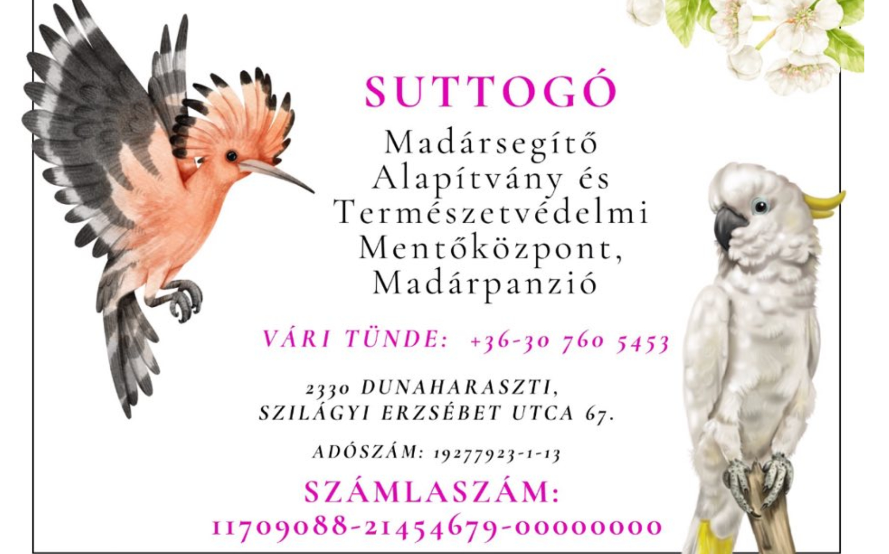 Ismerd meg virtuálisan örökbe fogadható madarainkat, és támogasd mindennapi gondozásukat, gyógykezelésüket és biztonságos élőhelyük fenntartását. A virtuális örökbefogadás nem jelenti fizikai hazavitelét a madárnak, de valódi segítséget nyújt számára. Választhatsz különböző madarak közül, és a támogatásod mértékéhez igazodó csomagok közül.
